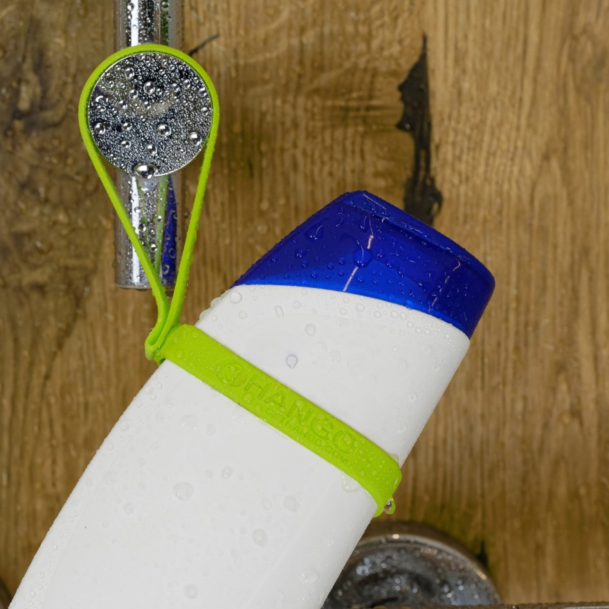 Hango to innowacyjny, silikonowy uchwyt wielokrotnego użytku, który dzięki swojej elastyczności doskonale dopasowuje się do większości opakowań napojów, bidonów, szamponów, mydeł oraz innych produktów codziennego użytku.